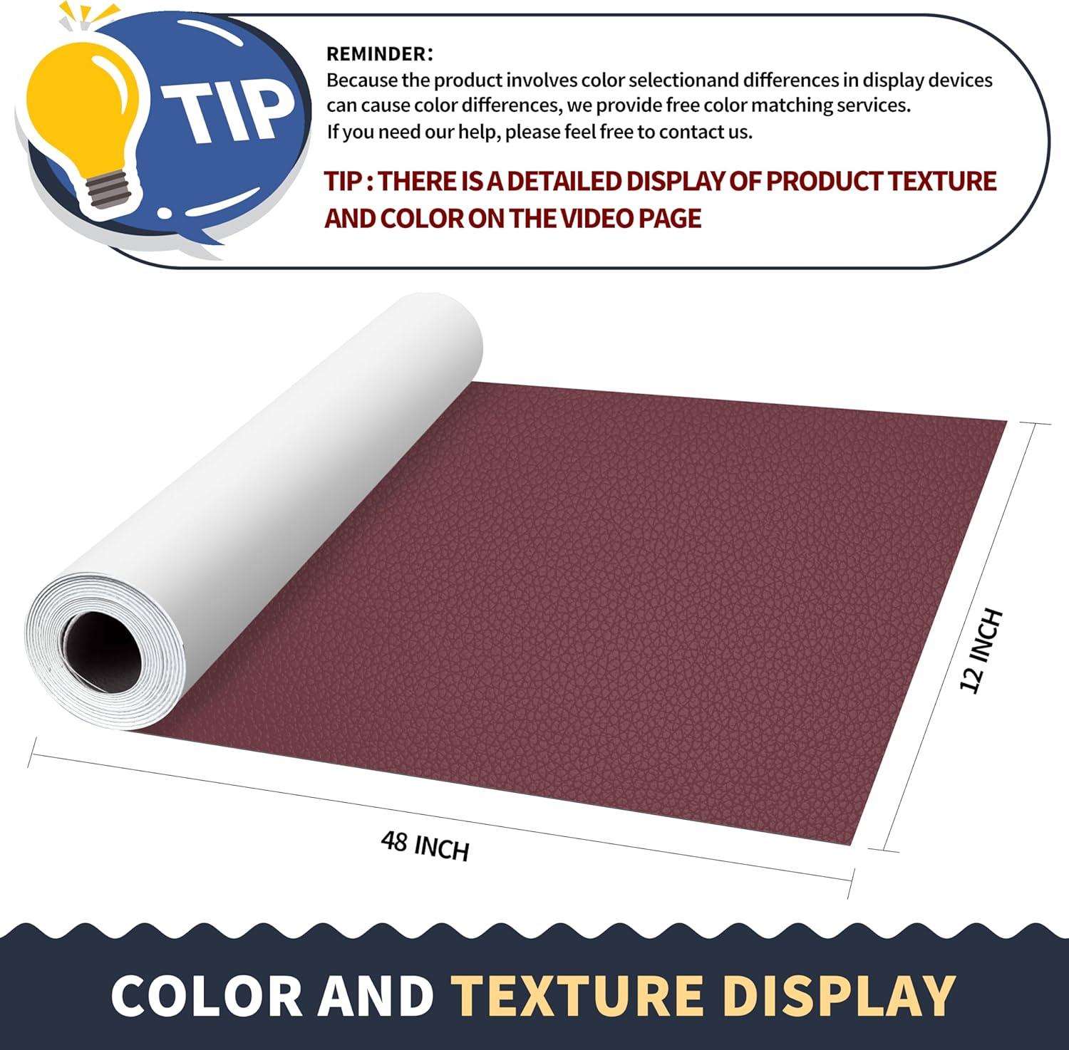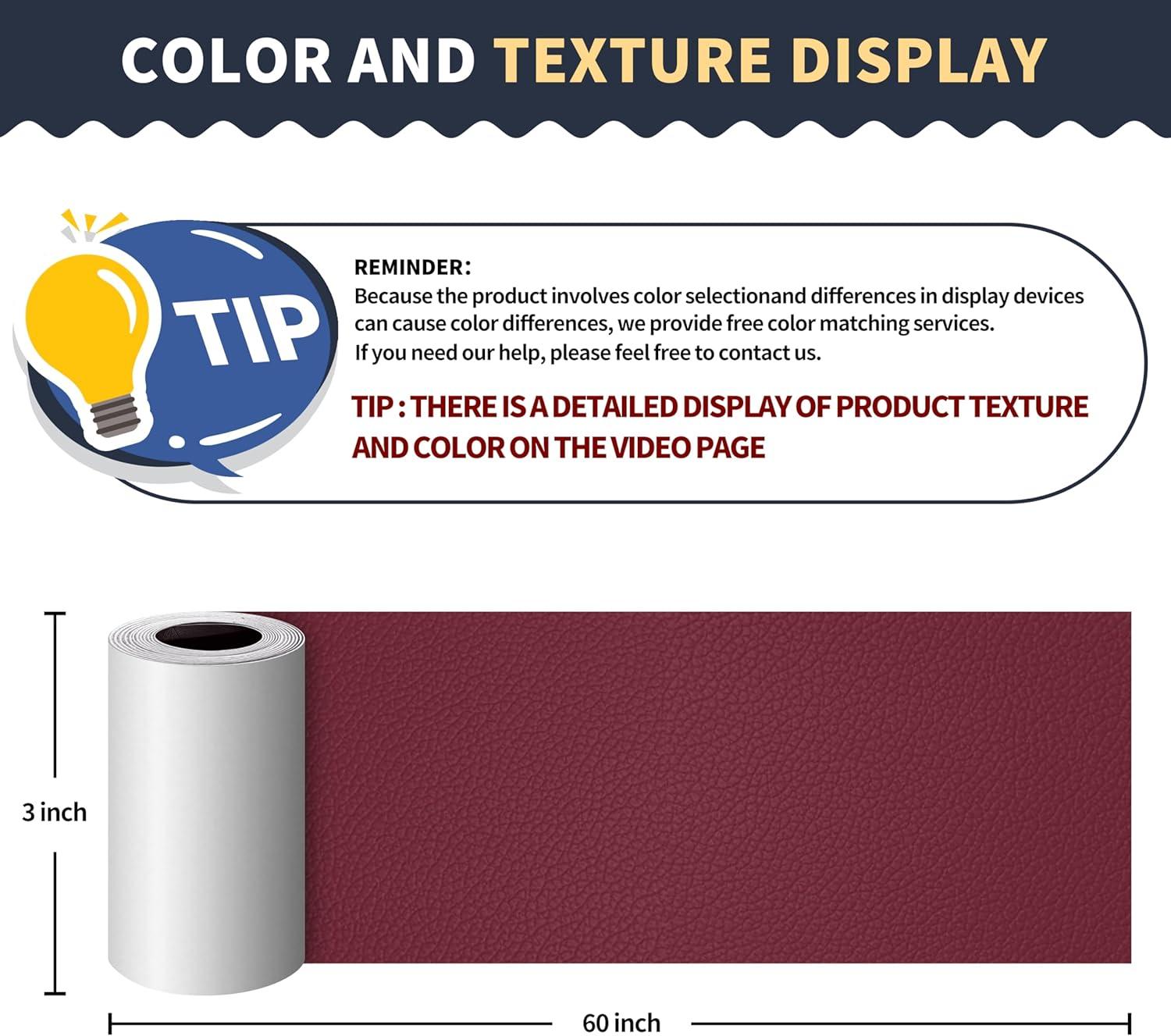 imageONine Leather Repair PatchLeather Repair Tape 3 x 60 inches Leather Repair Patch for FurnitureVinyl Repair KitLeather Couch Patchfor Sofas Furniture Car Seats Office ChairsDark BrownWine redLitchi Grain