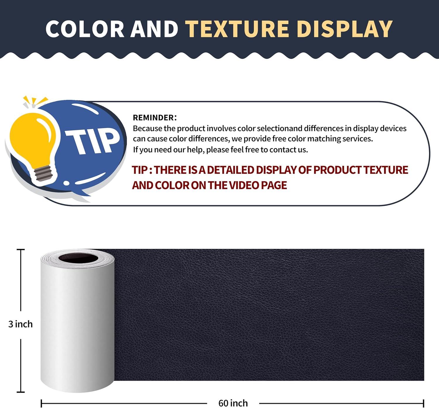 imageONine Leather Repair PatchLeather Repair Tape 3 x 60 inches Leather Repair Patch for FurnitureVinyl Repair KitLeather Couch Patchfor Sofas Furniture Car Seats Office ChairsDark BrownBlue GrayLitchi Grain