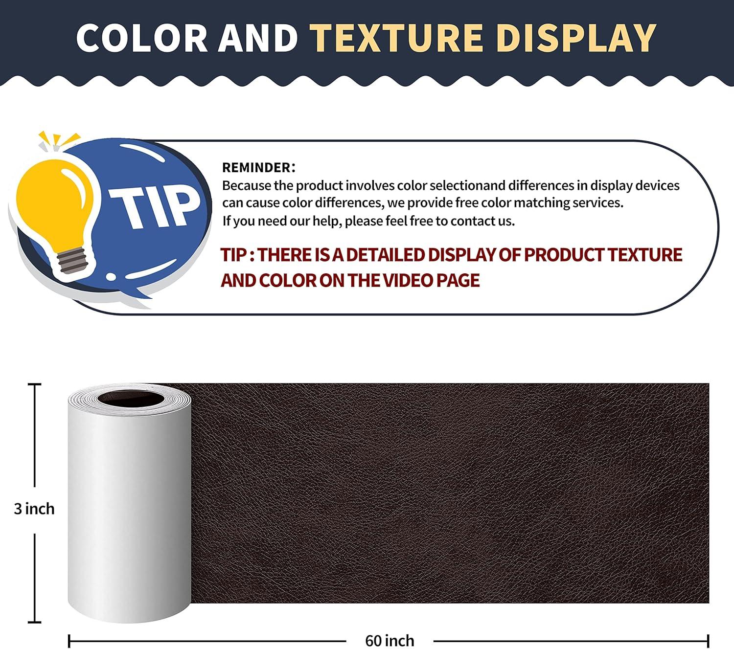 Classic Size: 3 x 60 inches leather repair tape, you can cut any size as needed. Leather texture is soft and smooth, medium thickness, good repair leather repair tape.