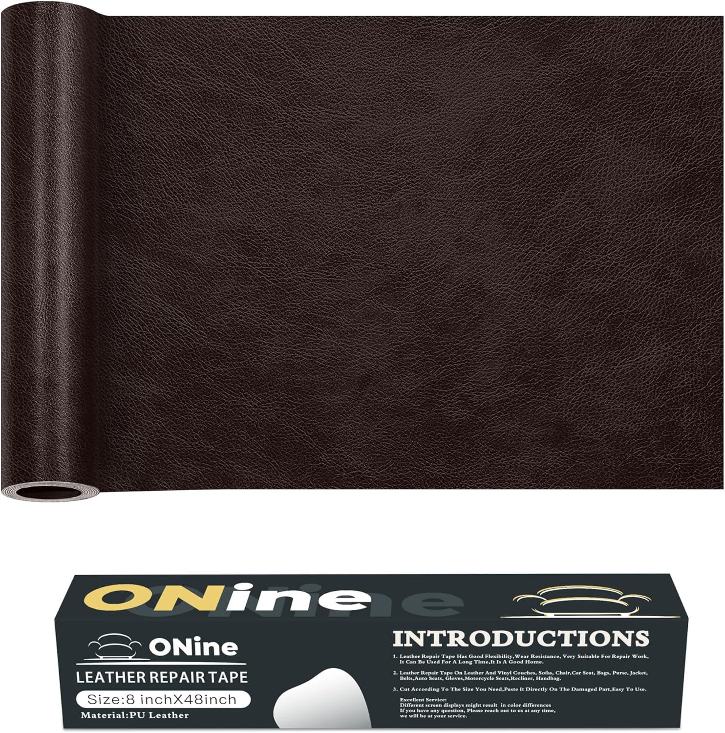 ONine Leather Repair Patch,Leather Repair Tape, 3 x 60 inches Leather Repair Patch for Furniture,Vinyl Repair Kit,Leather Couch Patch,for Sofas, Furniture, Car Seats, Office Chairs(Dark Brown)(Dark Brown)