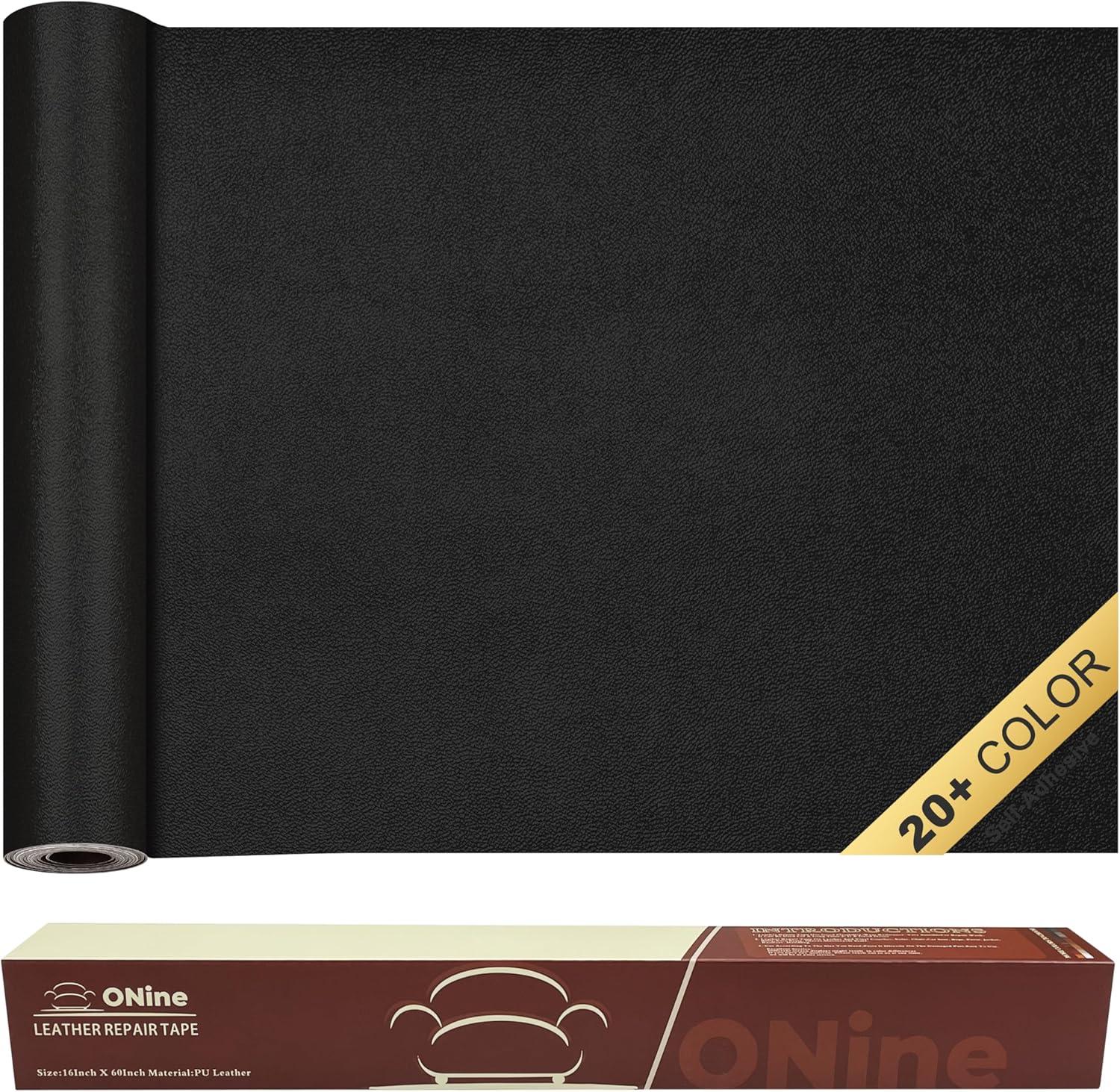 ONine Leather Repair Tape, Leather Repair Patch, 16 x 60 Inch Self-Adhesive Couch Patch, for Furniture, Sofas, Car Seats (Pure Black-Fine Grain)