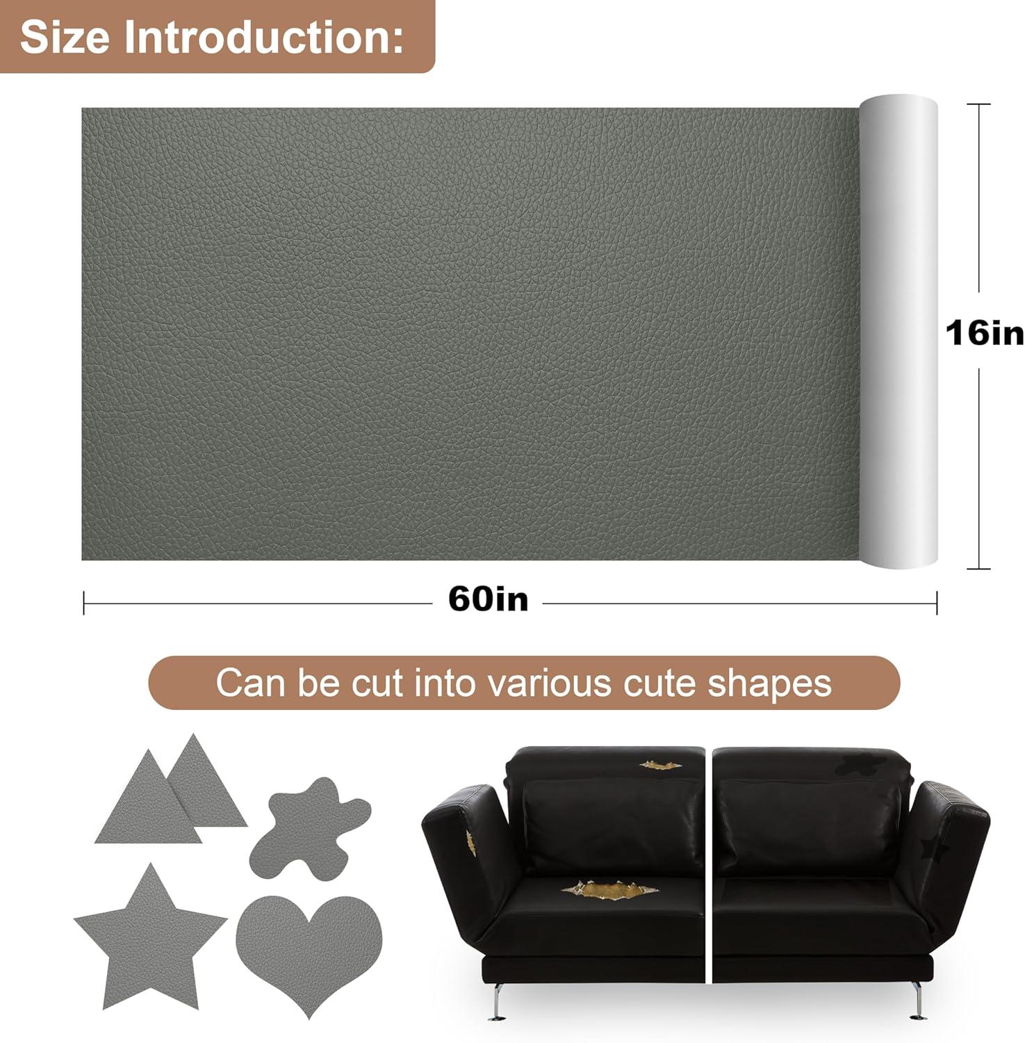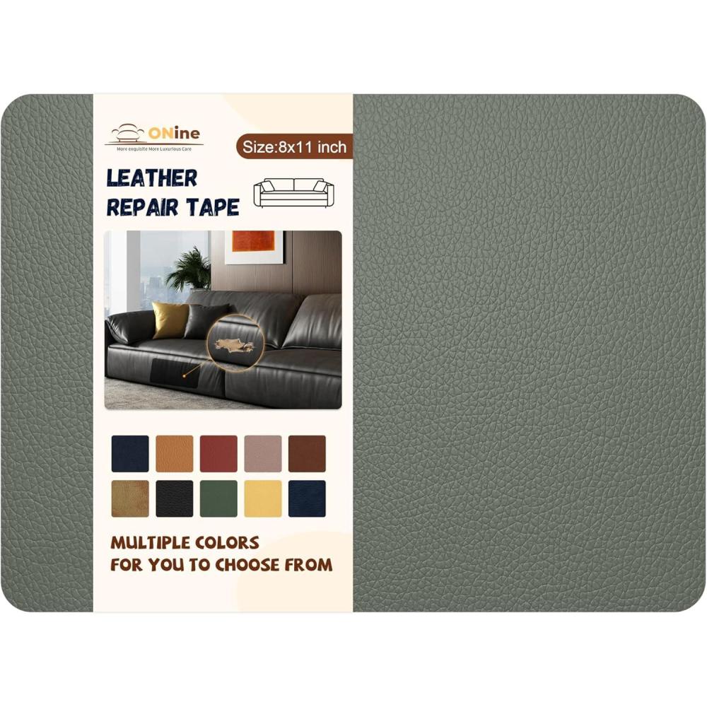 ONine Leather Repair Patch,Self-Adhesive Couch Patch,Multicolor Available Scratch Leather 8X11 Inch Peel and Stick for Sofas, Car Seats Hand Bags Jackets(New Dark Brown)(Gray Leather)