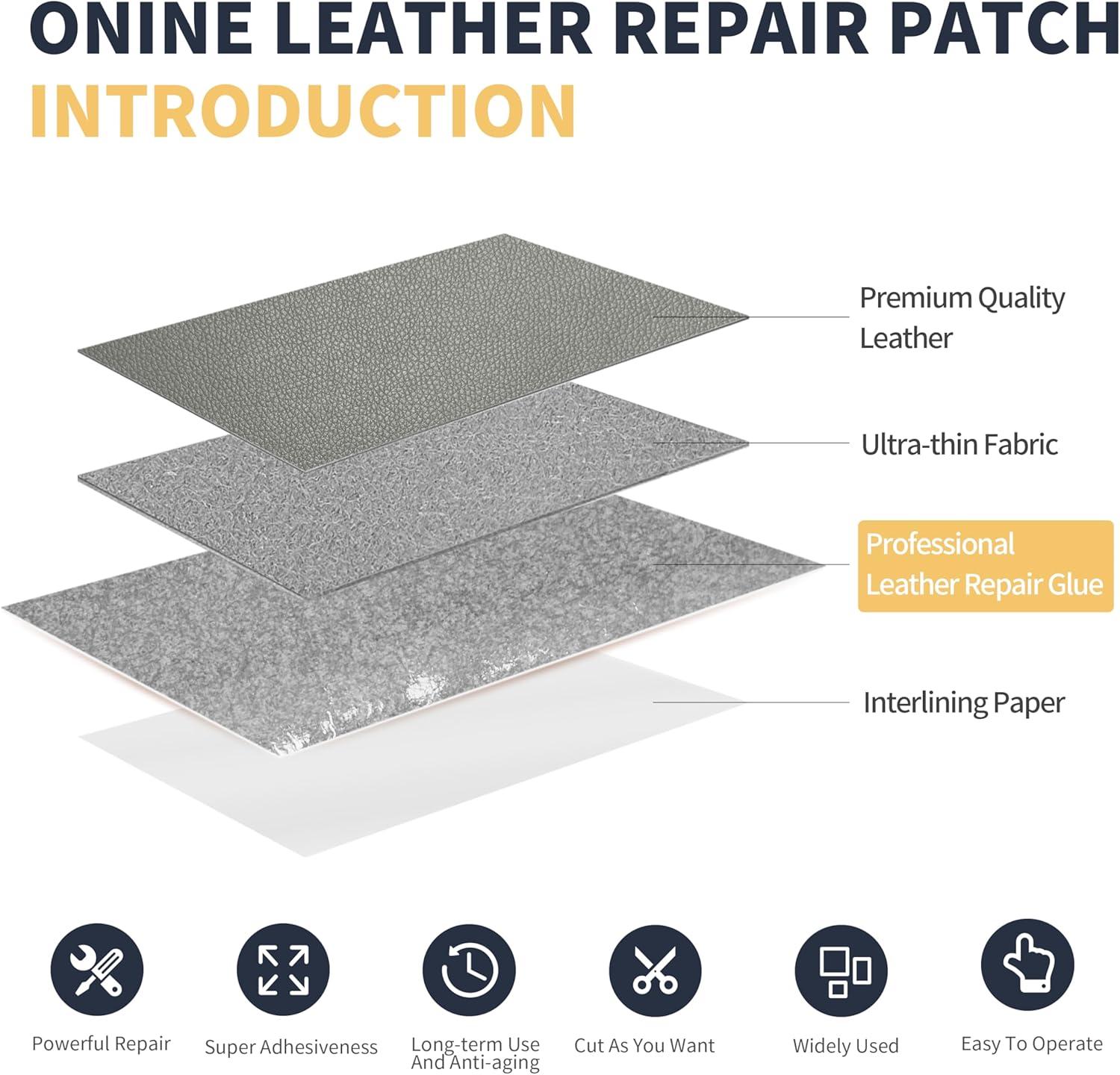 Premium Leather: ONine Leather Repair Tape is made with more durable leather materials and Professional adhesives. The leather repair kit comes in a variety of classic textures and colors. The leather surface has a clear texture and the leather material is soft. Leather repair patches are waterproof, wear-resistant, easy to clean and last longer.