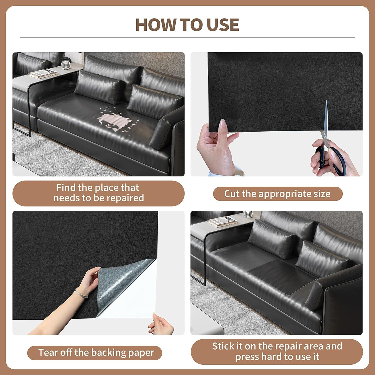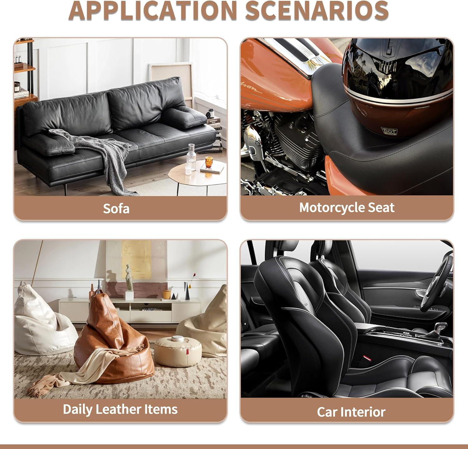 Wide Applications: leather tape for furniture for repairing/refurbishing sofas, leather recliners, car seats, motorcycle seats, leather furniture, wallets, boots, leather jackets, belts, luggage, and vinyl leather furniture.